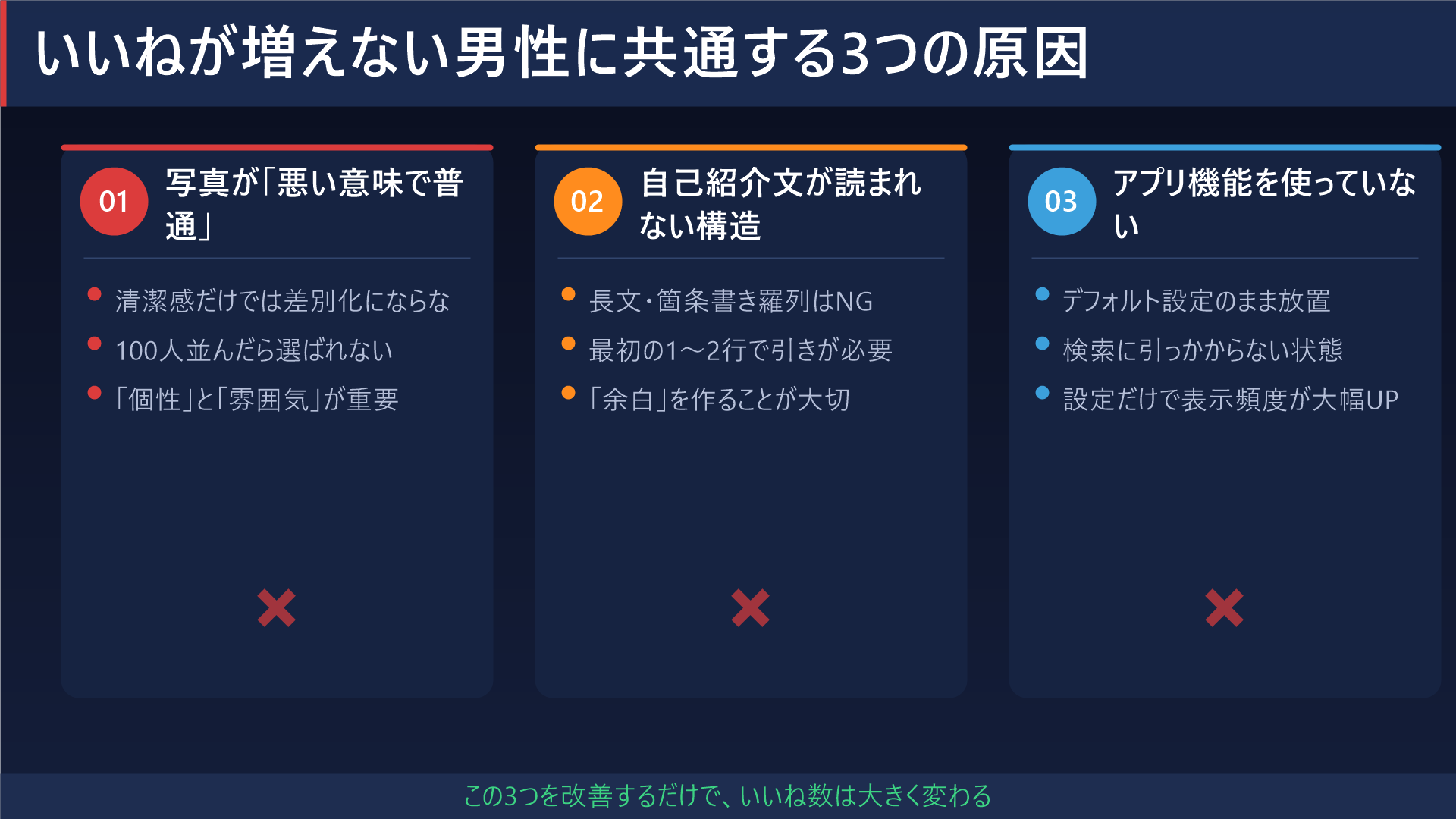 いいねが増えない男性に共通している3つの原因